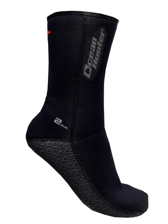 The Ocean Hunter Plush 2mm Neoprene Sock is made of premium high stretch neoprene making them super comfortable. The plush lining makes them much easier to get on, in addition to providing protection against chafing or discomfort and an extra layer of warmth.Â