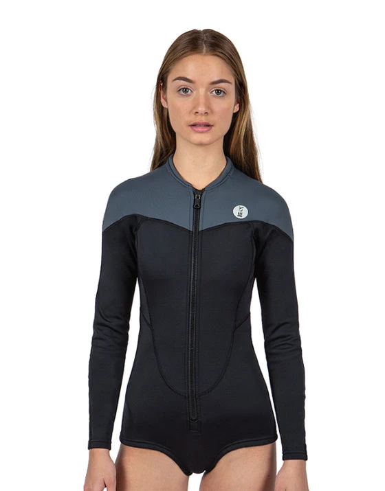 The women’s, Long Sleeve Swimsuit breaches the gap between traditional swimwear and a wetsuit, offering the equivalent of 2mm neoprene thermal protection this is the perfect option for wearing under a wetsuit or along for some warmth. A great option for warm water surfing and freediving. The front zip entry makes this super easy and convenient for getting in and out of.Â