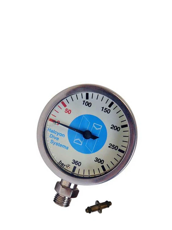 The high-quality pressure gauge from Halcyon is ideal as your primary pressure gauge. The large and clear display can be read very well in all conditions, also due to their highly visible and luminescent face. It is equipped with an industrial-strength spring designed for pressures well beyond 400bar (5,000psi).