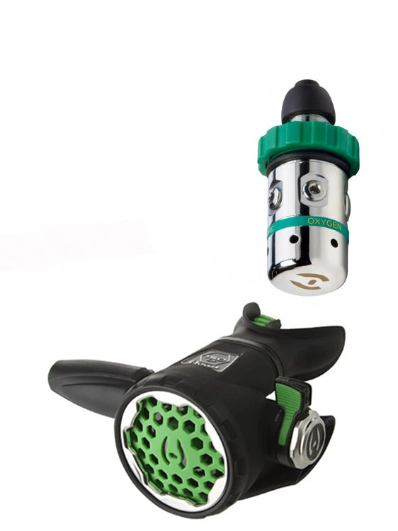 The Hollis 150LX second stage is paired with the HO2 first stage regulator: An oxygen regulator that is built for an oxygen percentage up to 100%. What you get is a great performance for an affordable price.