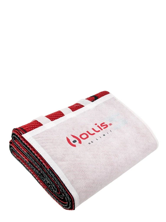 It is a 180x90cm folding mat that stows away nicely in its built-in carry case. The red and black colours perfectly match your Hollis dive gear.