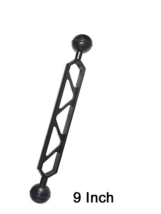 The Hyperion Aluminium Double Ball Arm is designed to allow you to achieve the best lighting angles when shooting underwater images. Underwater photography is all about artificial lighting, an optimum lighting set up means optimum image quality, and the lighting set up rig is just as important as the lighting itself! When adding a lighting set up to your camera housing or tray a double ball arm is a key piece of equipment, you can connect it directly to a ball arm strobe with a double ball clamp, or continue to clamp to other double ball arms to customise your exact lighting angles. The best thing about using double ball arms for your lighting rig, is the ability to switch and change lighting angles and distances to suit your needs, even whilst underwater!  Â