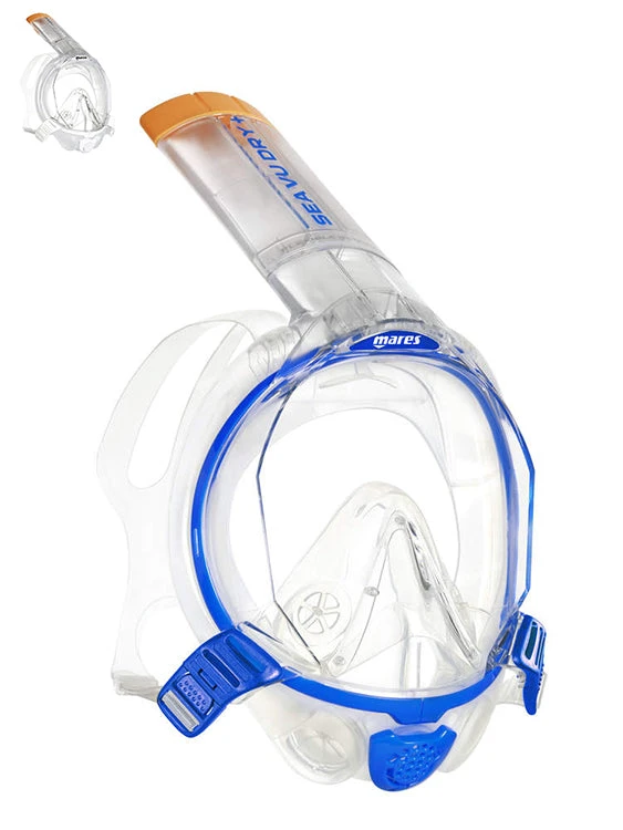 The Mares Sea Vu Dry + Full Face Snorkelling Mask is a perfect option for snorkelers who like to breathe through their nose and struggle with the traditional mask and snorkel.