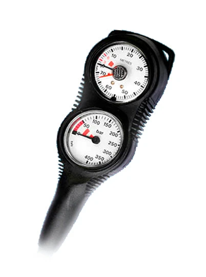 Generic 400 BAR white faced pressure gauge plus depth gauge.