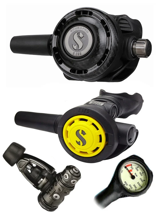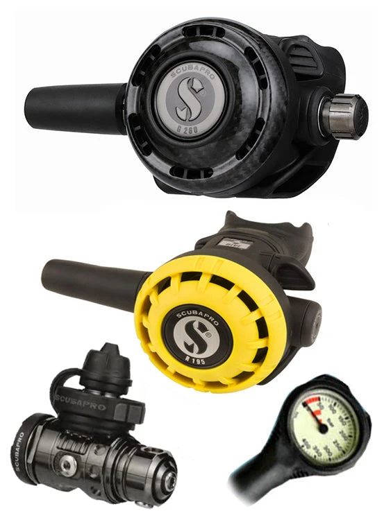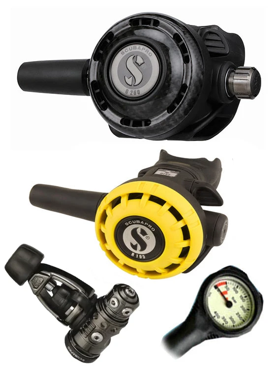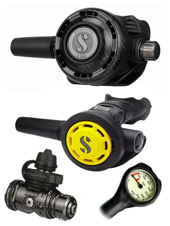 With the G260 Carbon / MK19 EVO Black Tech reg set of Scubapro’s connoisseurs range, you are purchasing one of Scubapro’s finest regulator sets. The reg set comes with an Octopus and a free Termo Gauge on top. With this option, you get durability and reliability for many years of diving to come.