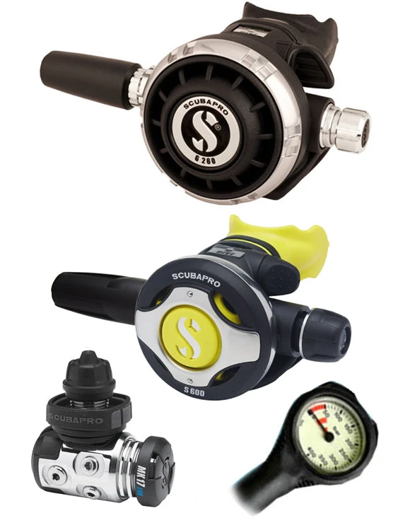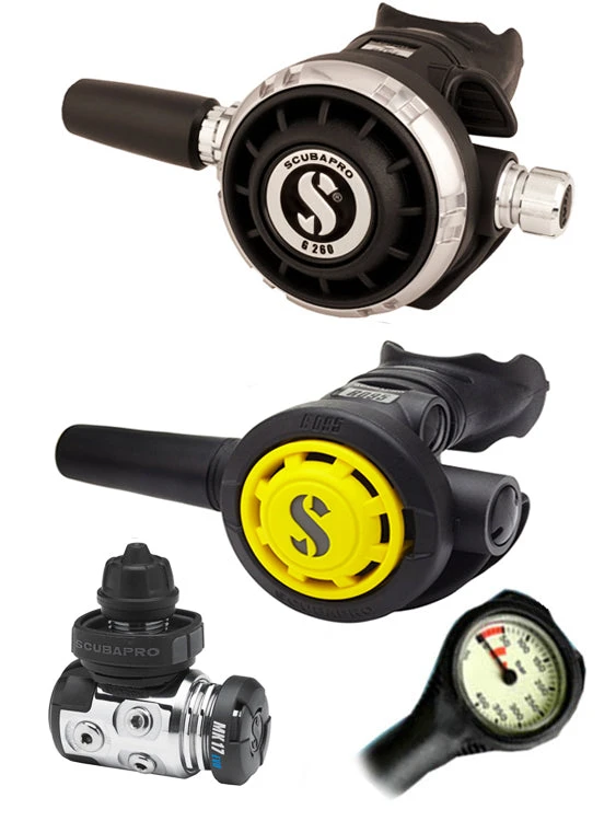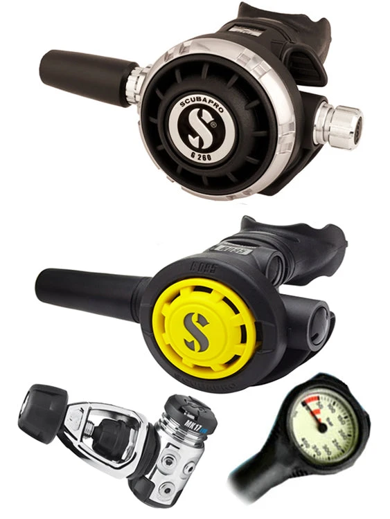 This regulator set from Scubapro features the MK17 EVO first stage, the G260 second stage, the R095/R195 Octopus, as well as a free termo gauge. This regulator combo is ideal for cold water dives or dives in murky waters, as the MK17 is completely sealed off from the elements (i.e. cold and pollutants). It is the optimal choice for cave divers.