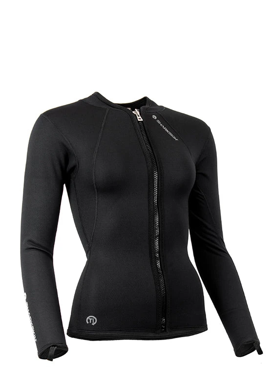 Unprecedented warmth in a neutrally buoyant tri-laminate garment: that is the Sharkskin Chillproof Titanium Long Sleeve Full Zip for women.