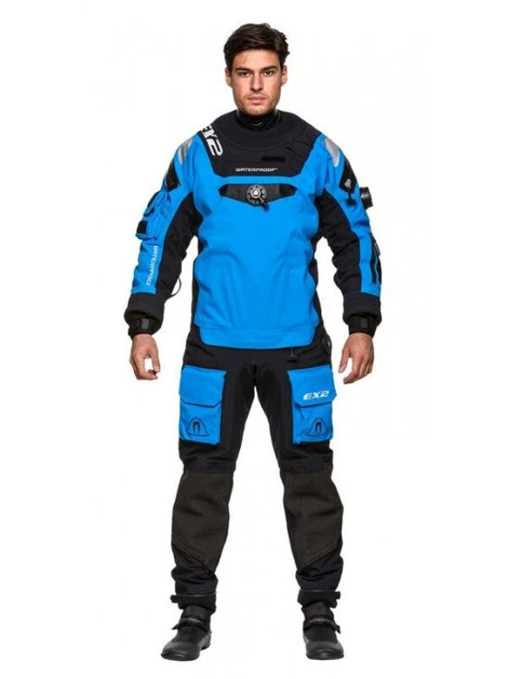 The EX2 features exchangeable silicone neck and wrist seals, which can be easily swapped for latex seals, due to the implementation of SI TECH rings. You can choose your own footwear, as the suit features fabric socks.